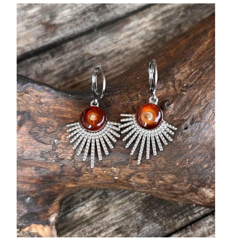 Leur pendentif en forme de demi soleil souligne la beauté du verre et apporte une touche moderne et raffinée à votre look. Une création qui capte la lumière et sublime le visage avec élégance.