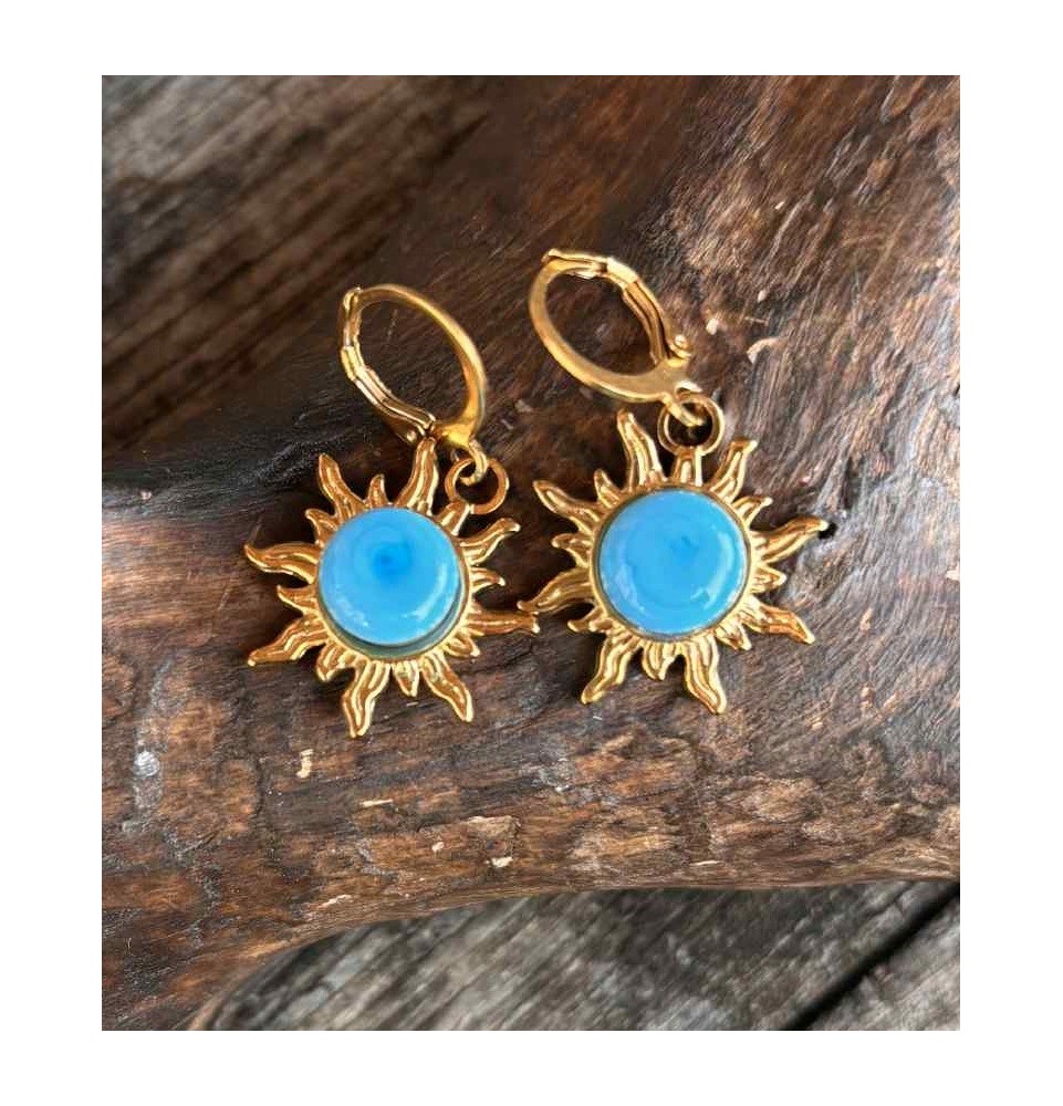 Illuminez vos tenues avec cette paire de boucles d’oreilles “Soleil tuquoise”, une création unique signée Liloo Créations.