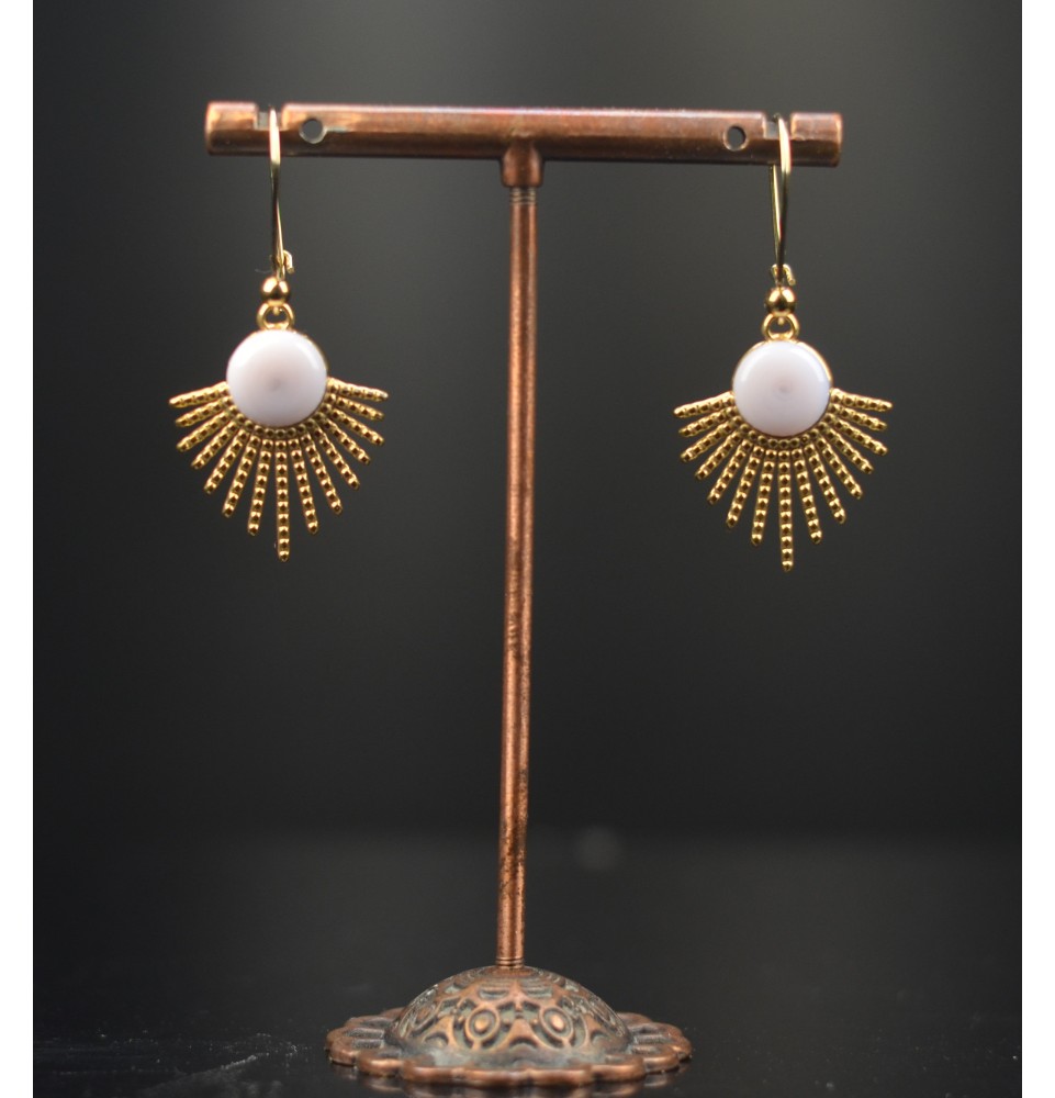 Leur pendentif en forme de demi soleil souligne la beauté du verre et apporte une touche moderne et raffinée à votre look. Une création qui capte la lumière et sublime le visage avec élégance.