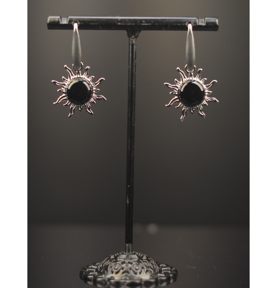 Illuminez vos tenues avec cette paire de boucles d’oreilles “Soleil noir”, une création unique signée Liloo Créations.