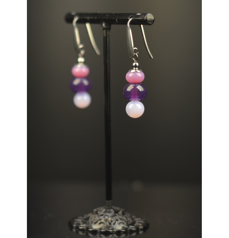 Boucles d’oreilles en acier inoxydable et perles de verre filé – Modèle « Trio de Lumière »