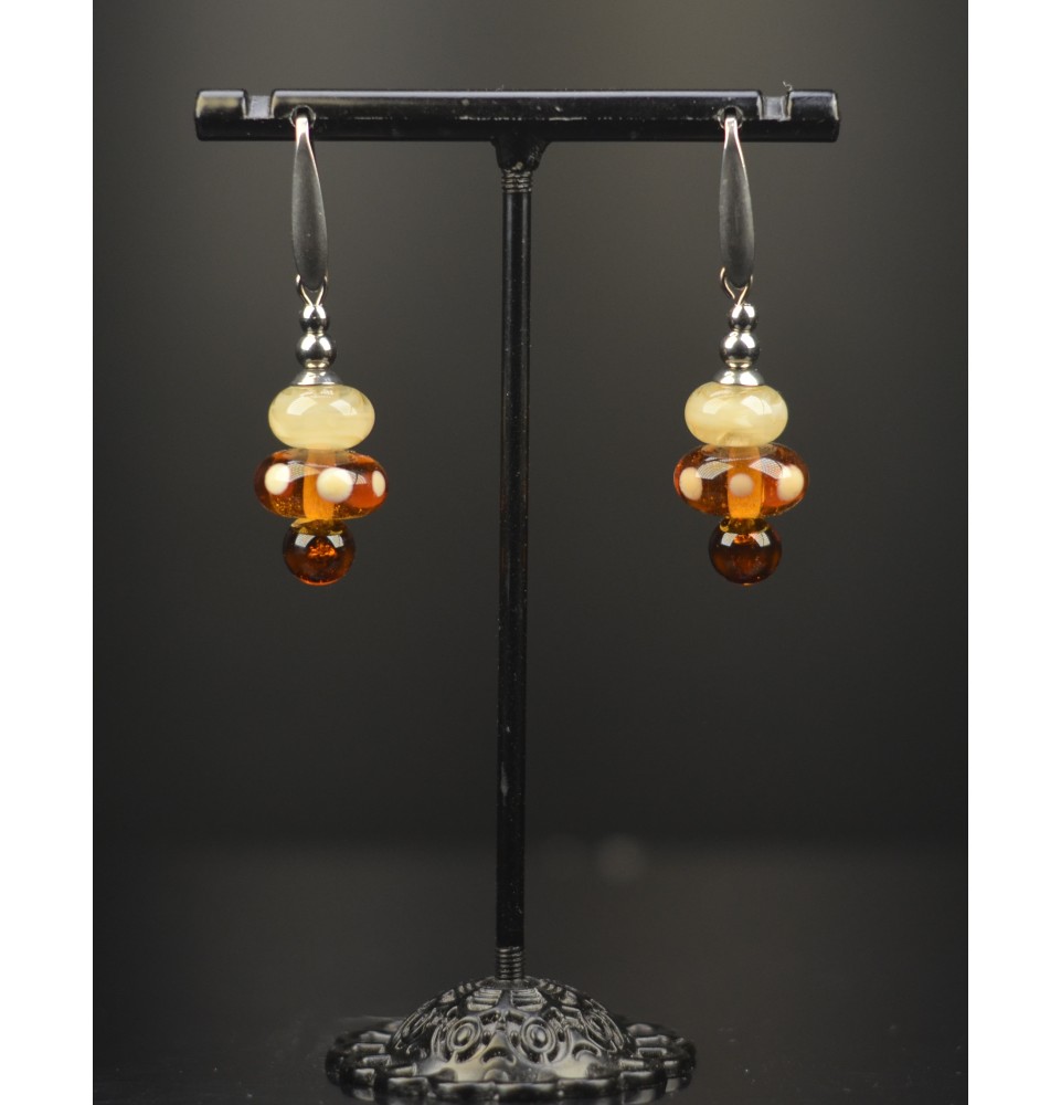 Boucles d’oreilles en acier inoxydable et perles de verre filé – Modèle « Trio de Lumière »