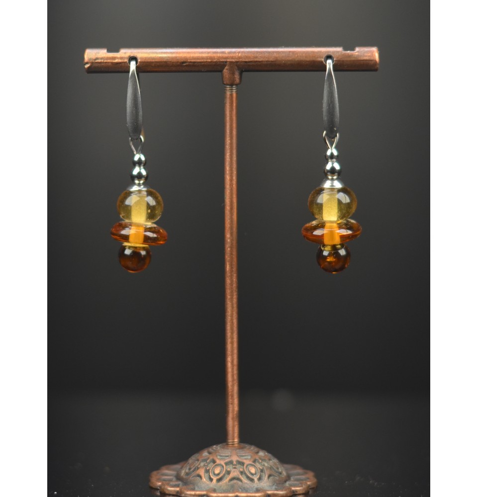 Boucles d’oreilles en acier inoxydable et perles de verre filé – Modèle « Trio de Lumière »