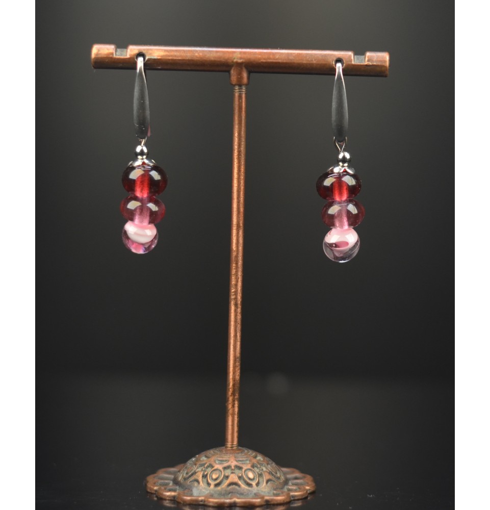 Boucles d’oreilles en acier inoxydable et perles de verre filé – Modèle « Trio de Lumière »