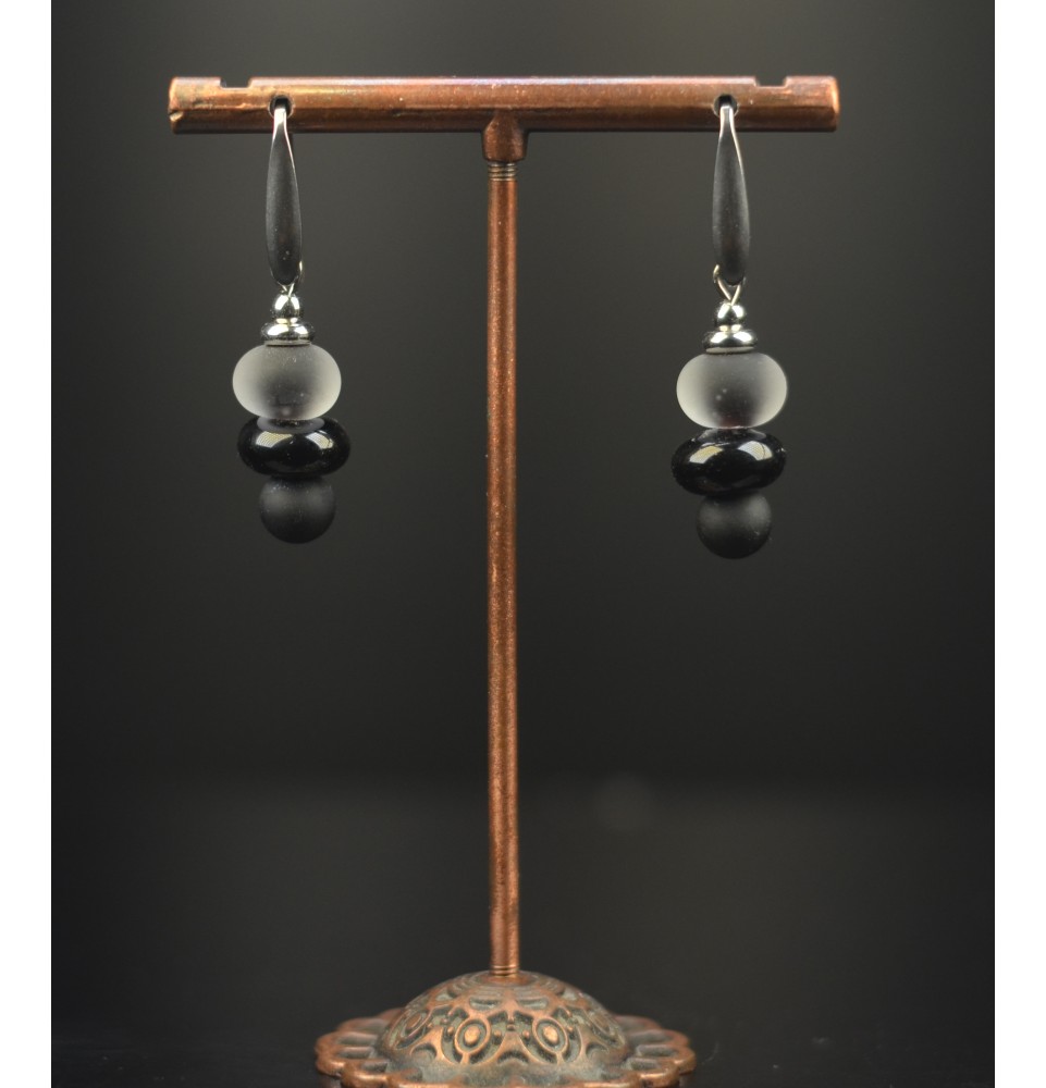 Boucles d’oreilles en acier inoxydable et perles de verre filé – Modèle « Trio de Lumière »