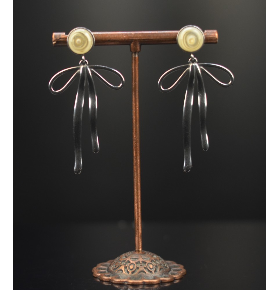 Boucles d’oreilles “Nœud d’Amour” – Verre ivoire & acier inoxydable