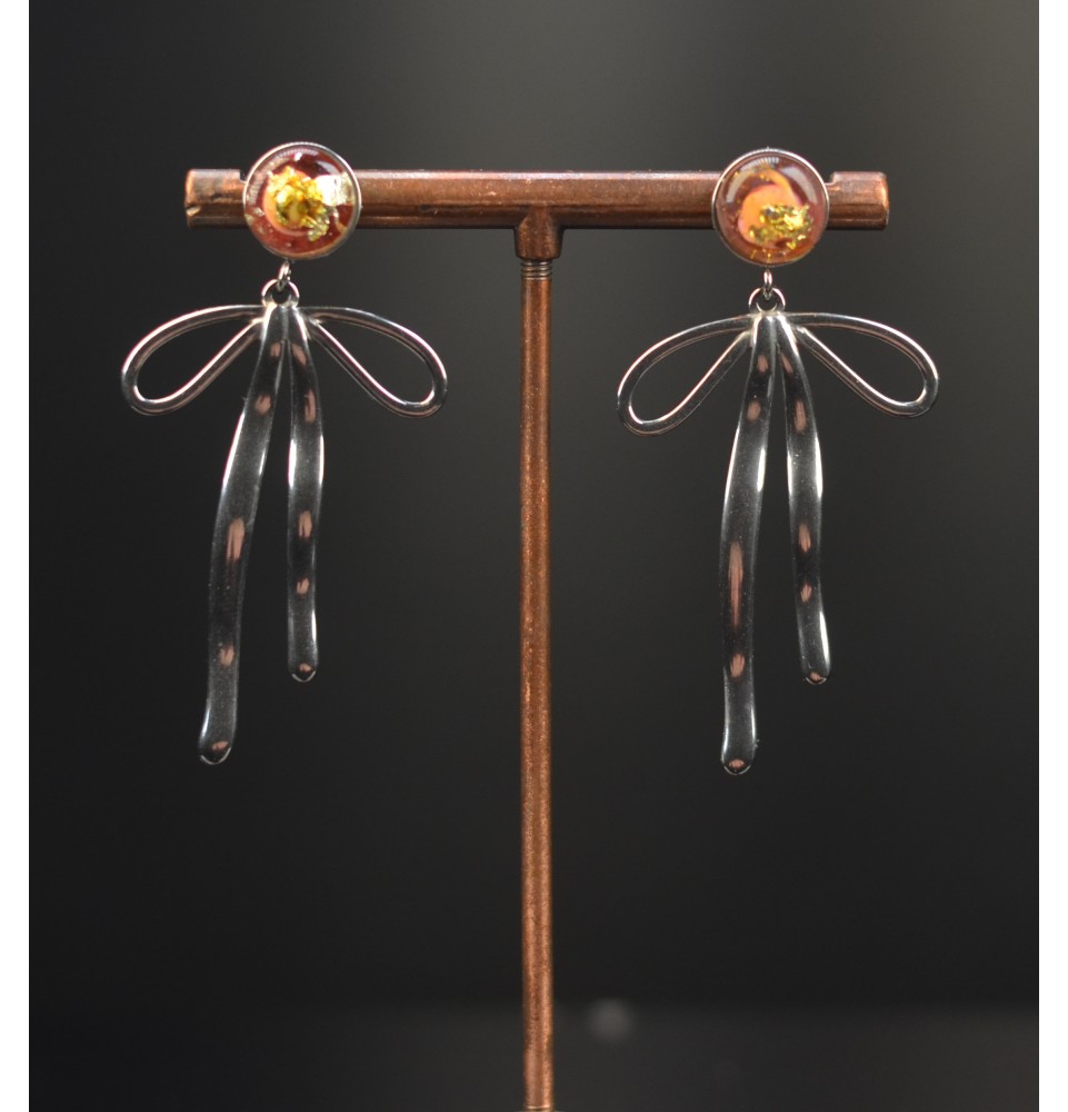 Le modèle se compose d’un gros nœud délicatement travaillé, suspendu sous un cabochon de verre artisanal de 8 mm de diamètre. L’ensemble est monté sur des crochets en acier inoxydable, garantissant confort et durabilité, même pour les peaux sensibles.