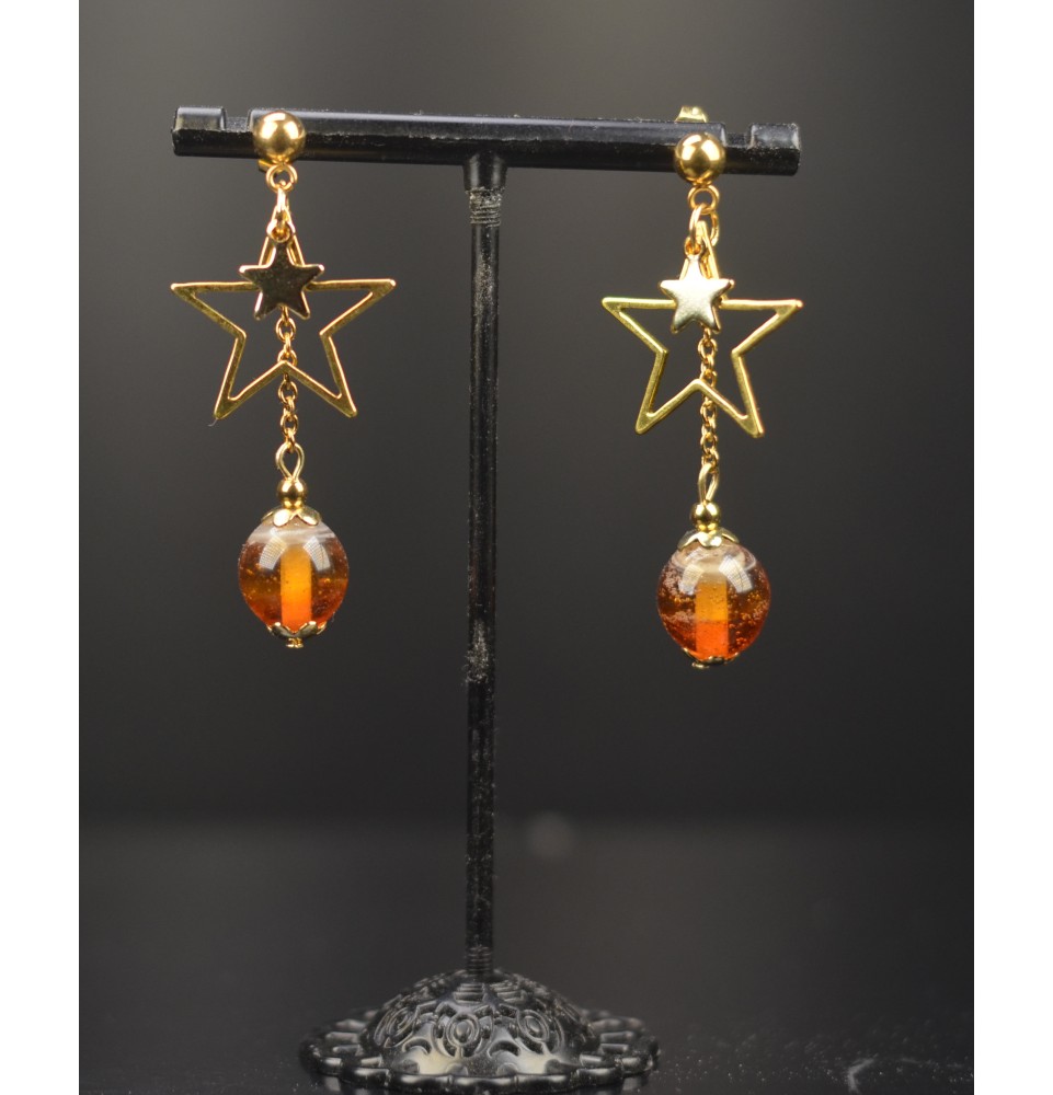 Boucles d’oreilles en perles verre filé – l’éclat du dégradé ambré - acier inoxydable doré