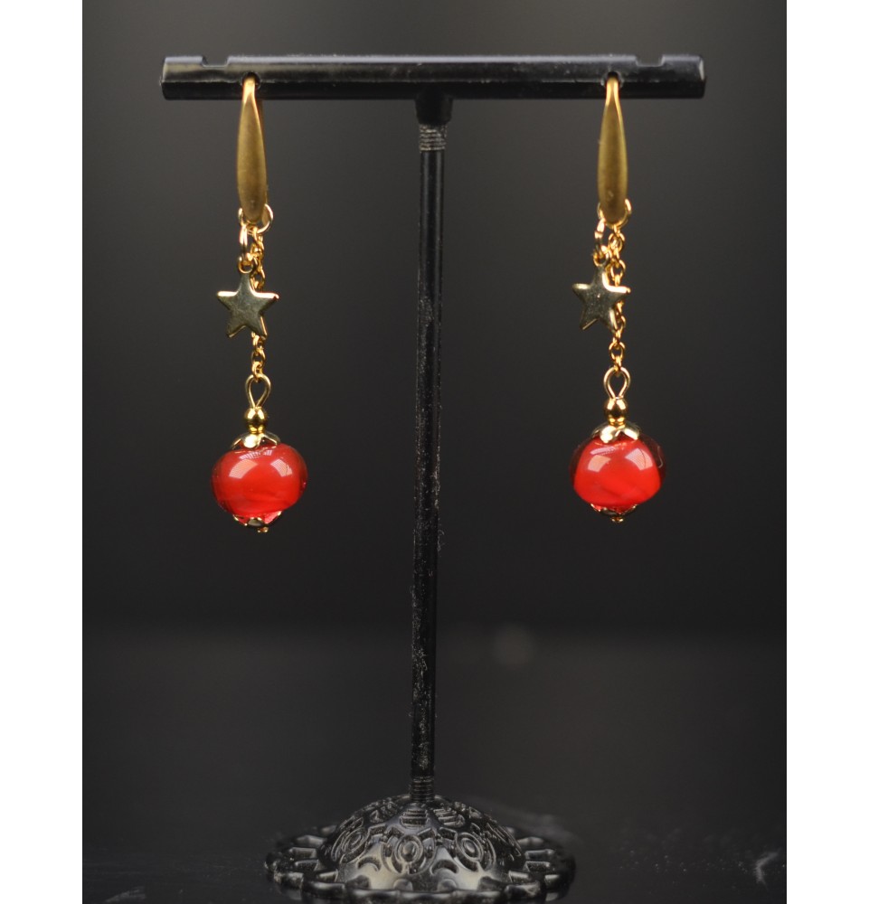 Boucles d’oreilles en perles verre filé – l’éclat du rouge rubis - acier inoxydable doré