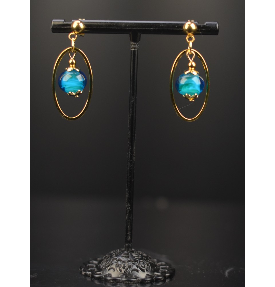 Boucles d’oreilles en perles verre filé – l’éclat du bleu vert - acier inoxydable doré
