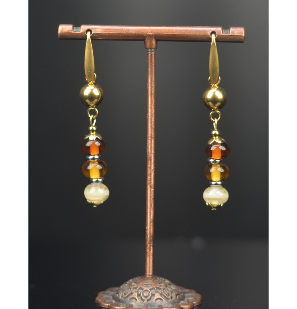 Boucles d’oreilles dégradé ambré – Verre filé artisanal & acier inoxydable doré