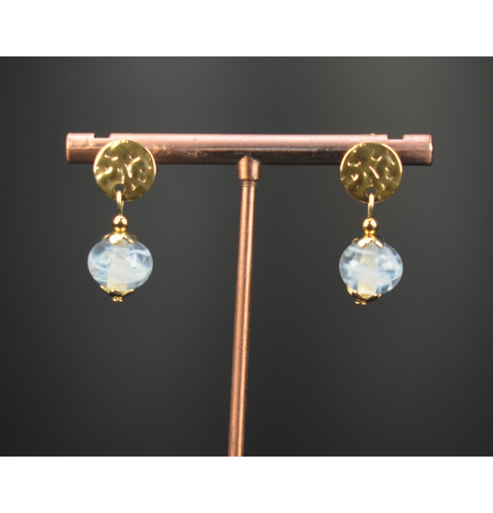 Boucles d’oreilles en perles verre filé – l’éclat blanc nuage - acier inoxydable doré