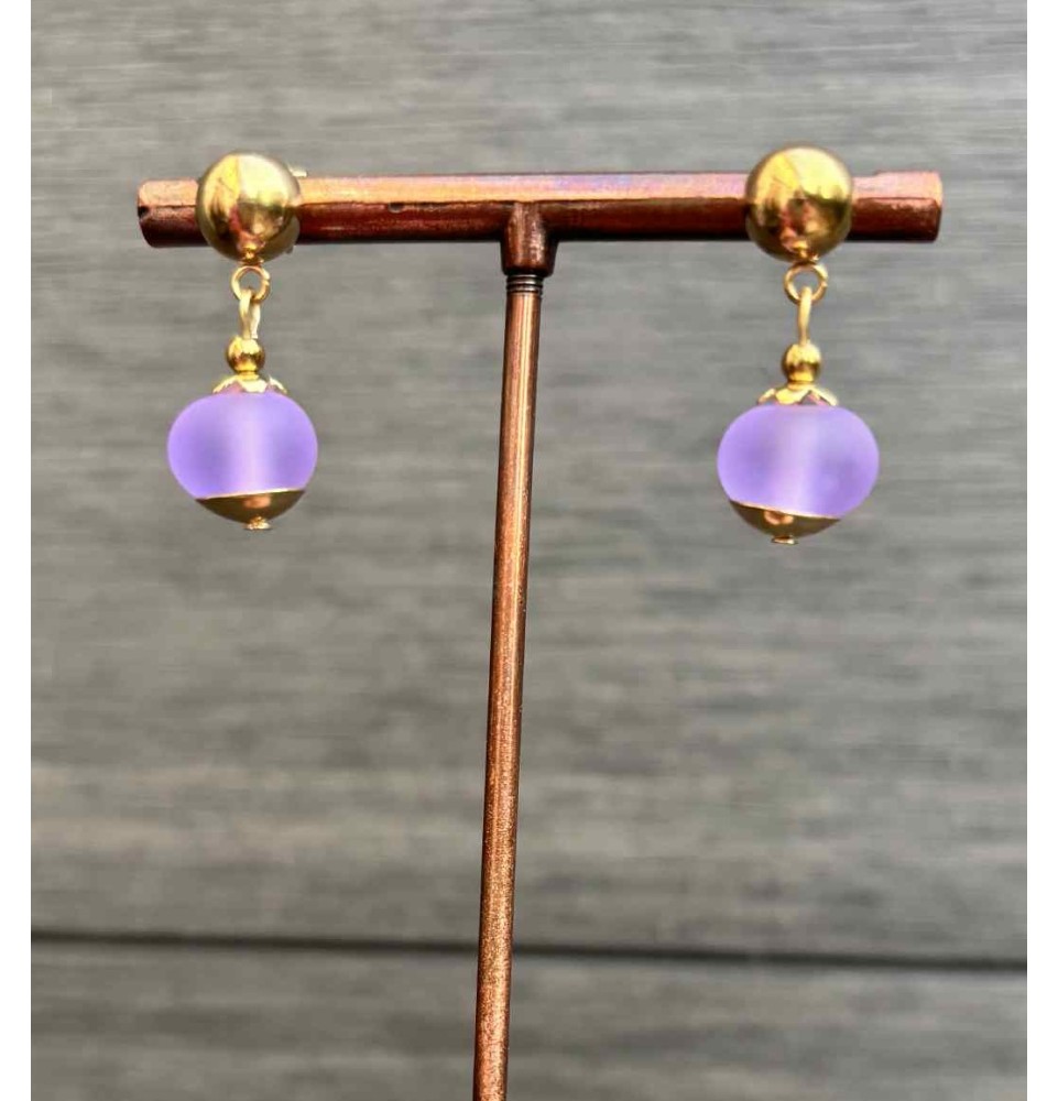 Boucles d’oreilles en perles verre filé – l’éclat violet givré - acier inoxydable doré