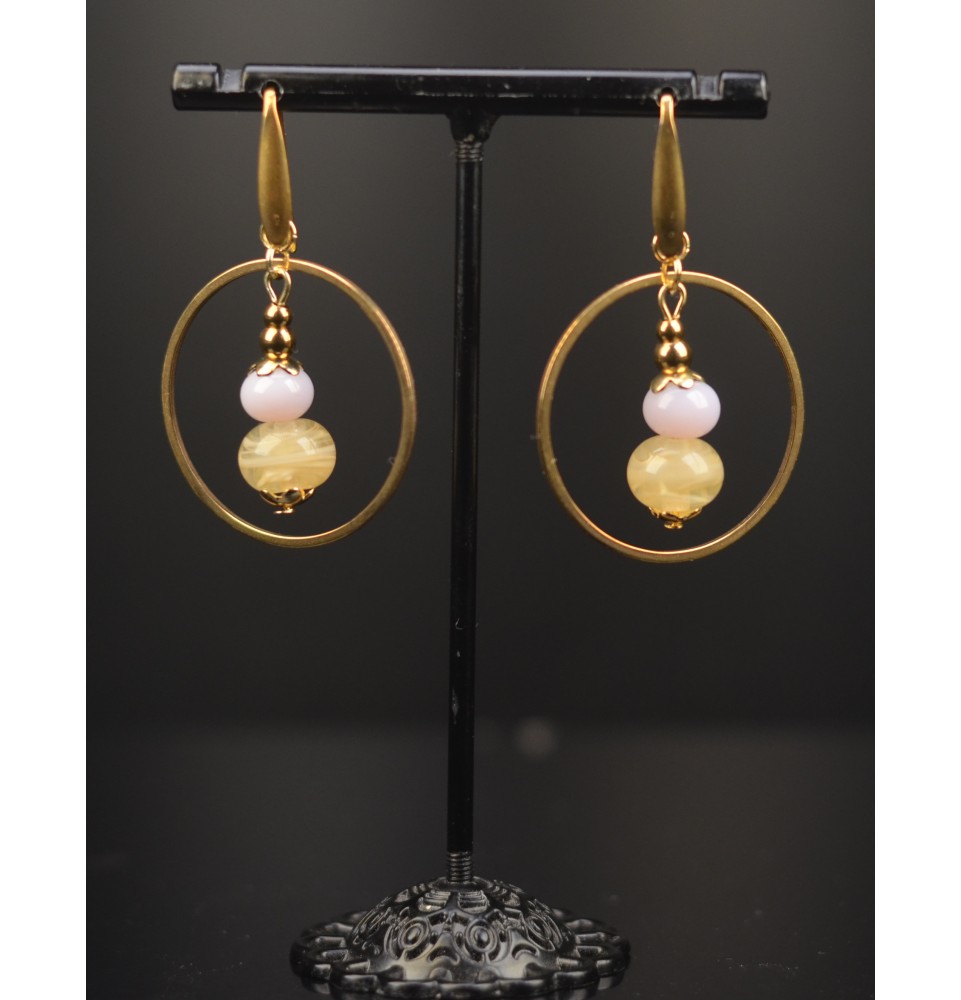 Boucles d’oreilles en perles verre filé – IVOIRE ET ROSE - acier inoxydable doré