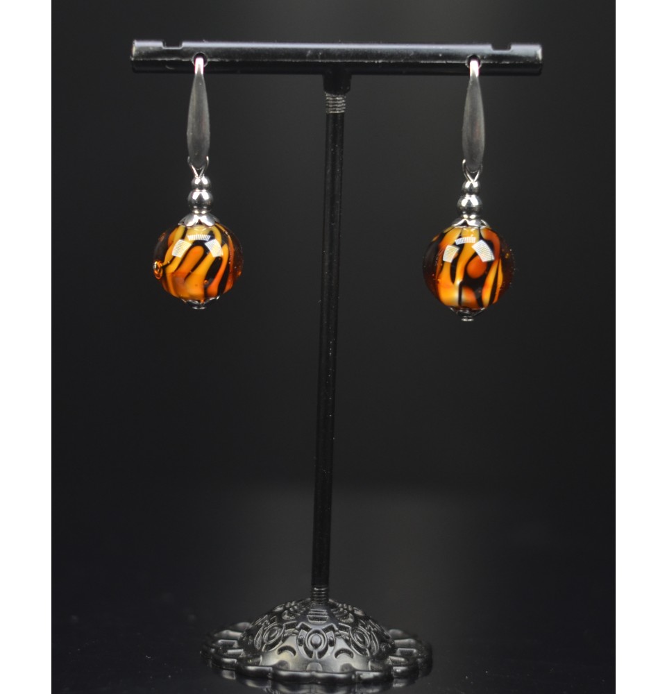 Boucles d’oreilles Léopard en perles de verre filé – Capsule Léopard – Acier inoxydable argenté