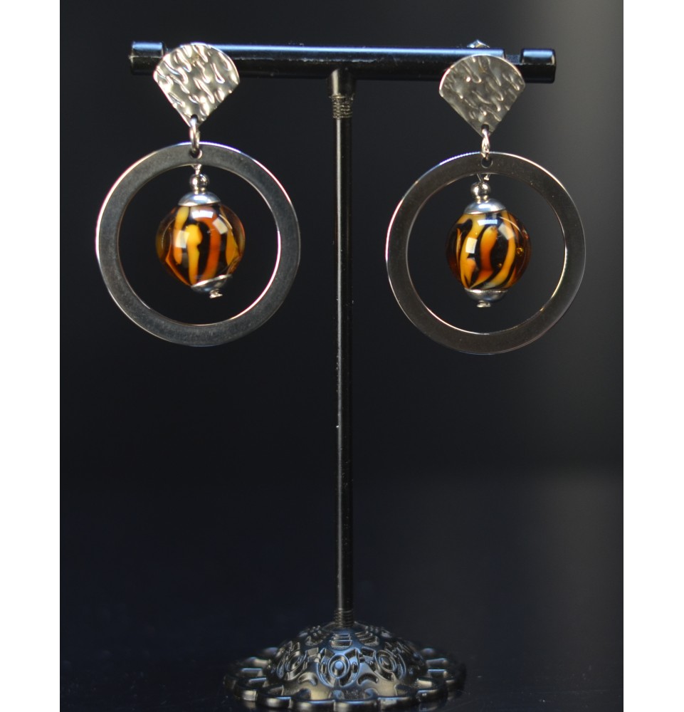 Boucles d’oreilles en perles verre filé – LEOPARD - acier inoxydable