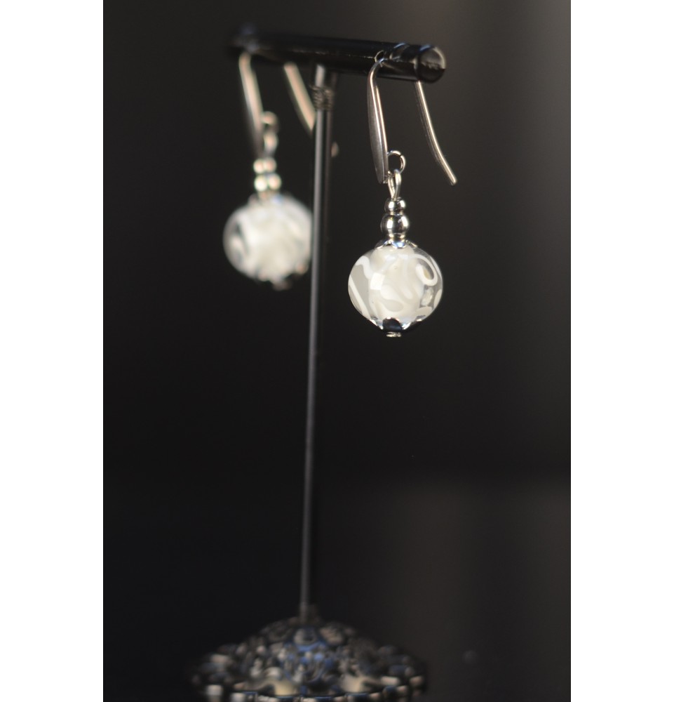 Boucles d’oreilles blanches en perles de verre filé – Acier inoxydable argenté