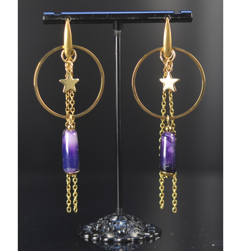 Boucles d’oreilles "VIOLET"– Tubes en verre filé & acier doré