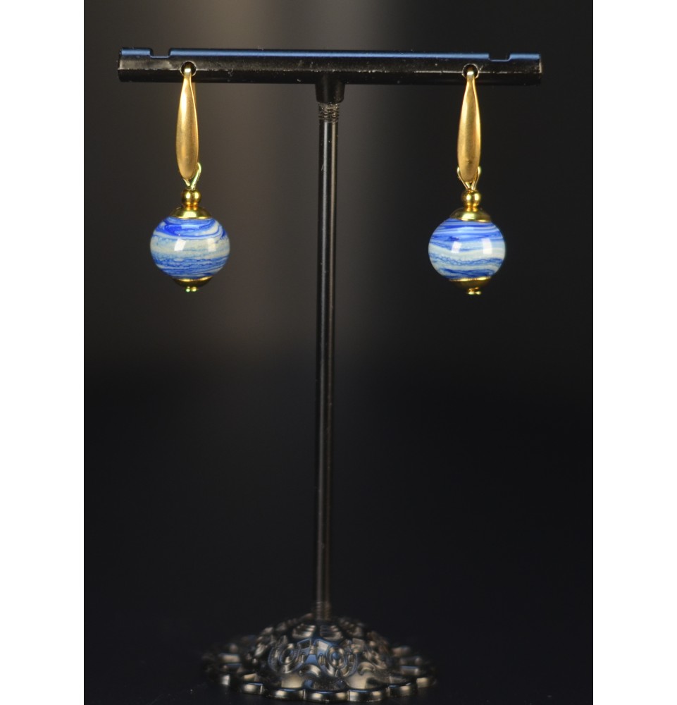 Boucles d’oreilles en perles verre filé – BLEU tie and dye- acier inoxydable doré
