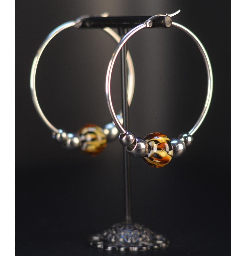 Créoles Léopard 5 cm – Perles de Verre Artisanales - acier inoxydable argenté