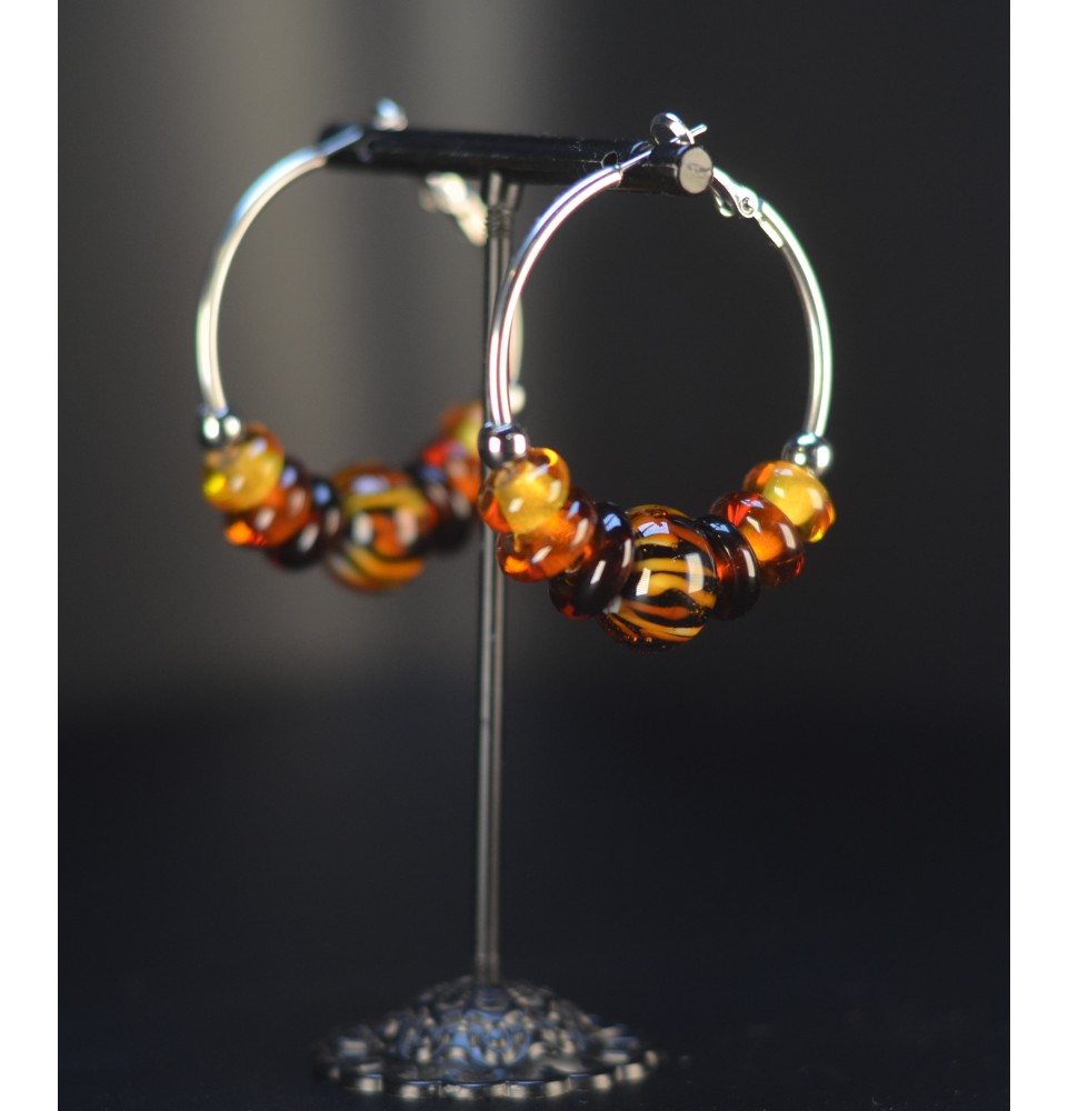 Créoles Léopard 4 cm – Perles de Verre Artisanales - acier inoxydable argenté