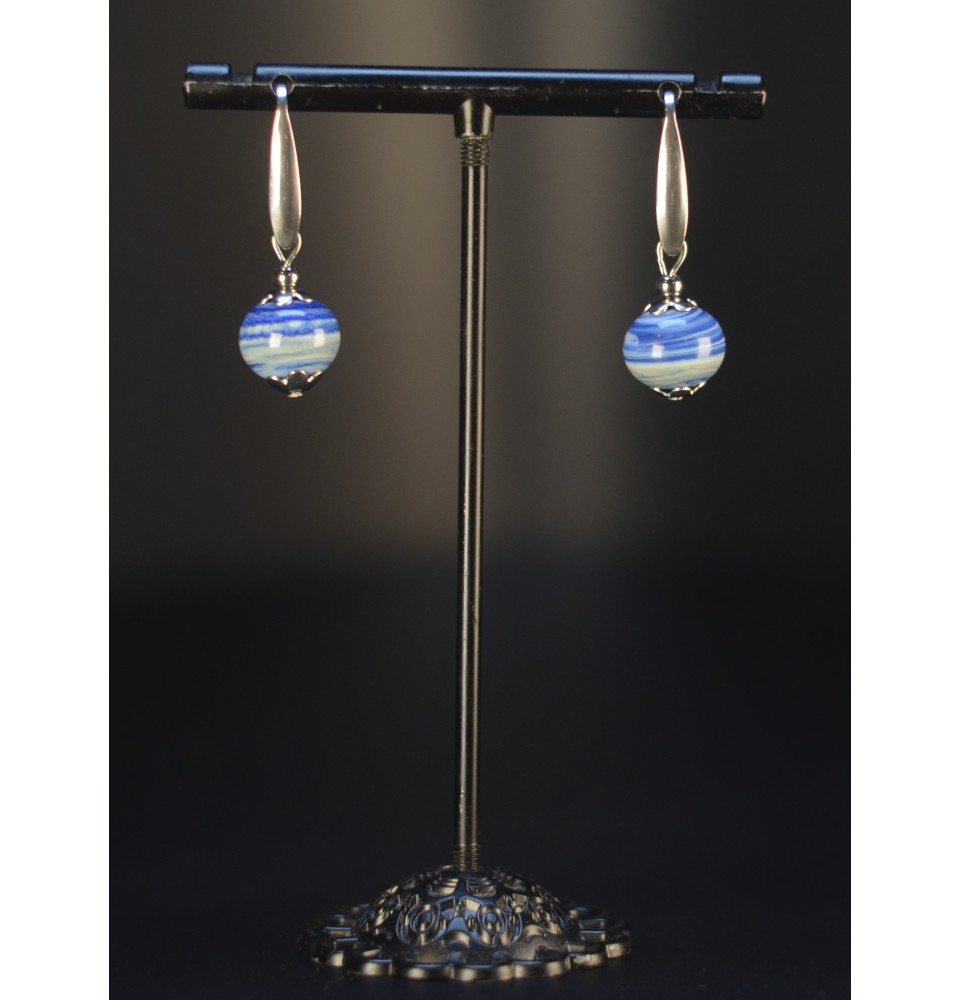 Boucles d’oreilles en perles verre filé – BLEU tie and dye- acier inoxydable