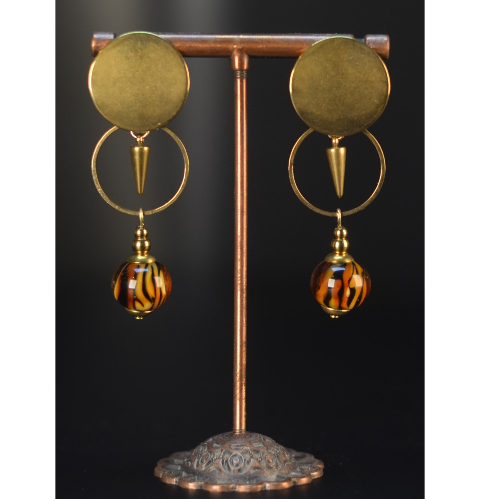 Boucles d’oreilles artisanales en acier inoxydable avec PERLES de verre filé – LEOPARD