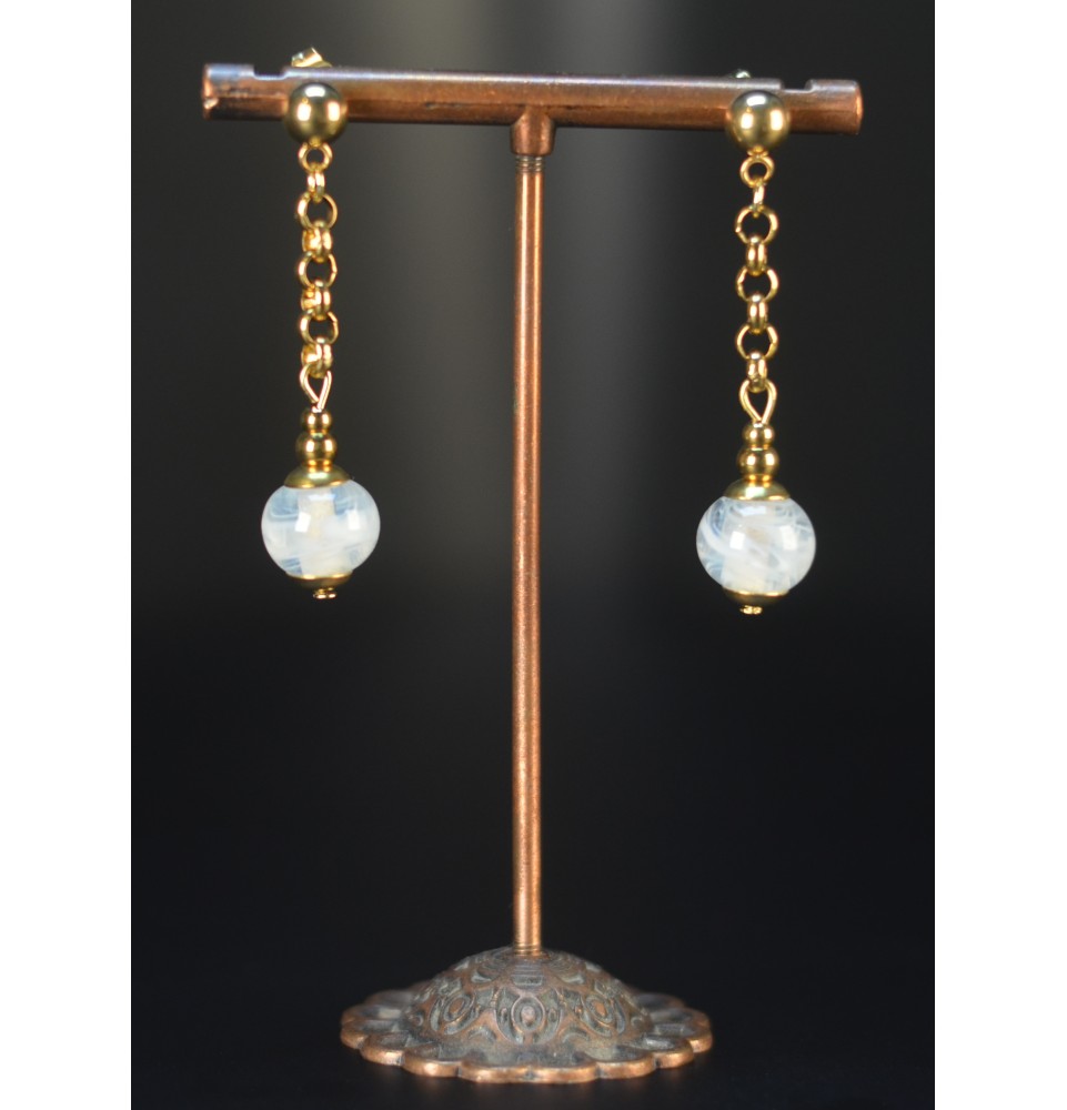 Boucles d’oreilles en perles verre filé – blanc - acier inoxydable doré