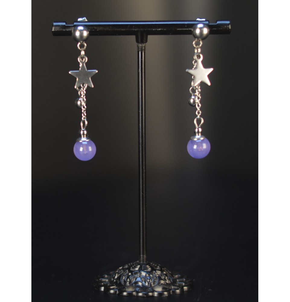 Boucles d’oreilles en perles verre filé – MAUVE OPALE - acier inoxydable