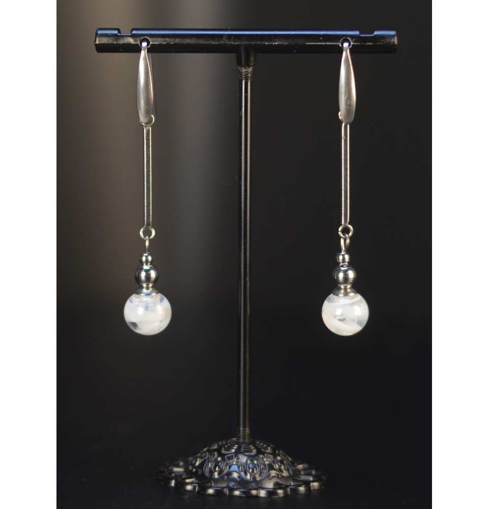 Boucles d’oreilles en perles verre filé – blanc - acier inoxydable