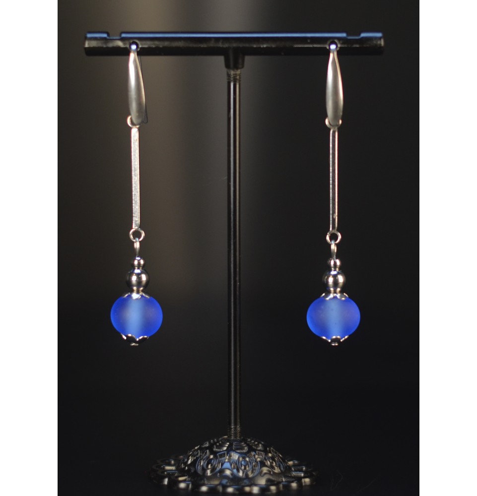 Boucles d’oreilles en perles verre filé – bleu mate - acier inoxydable