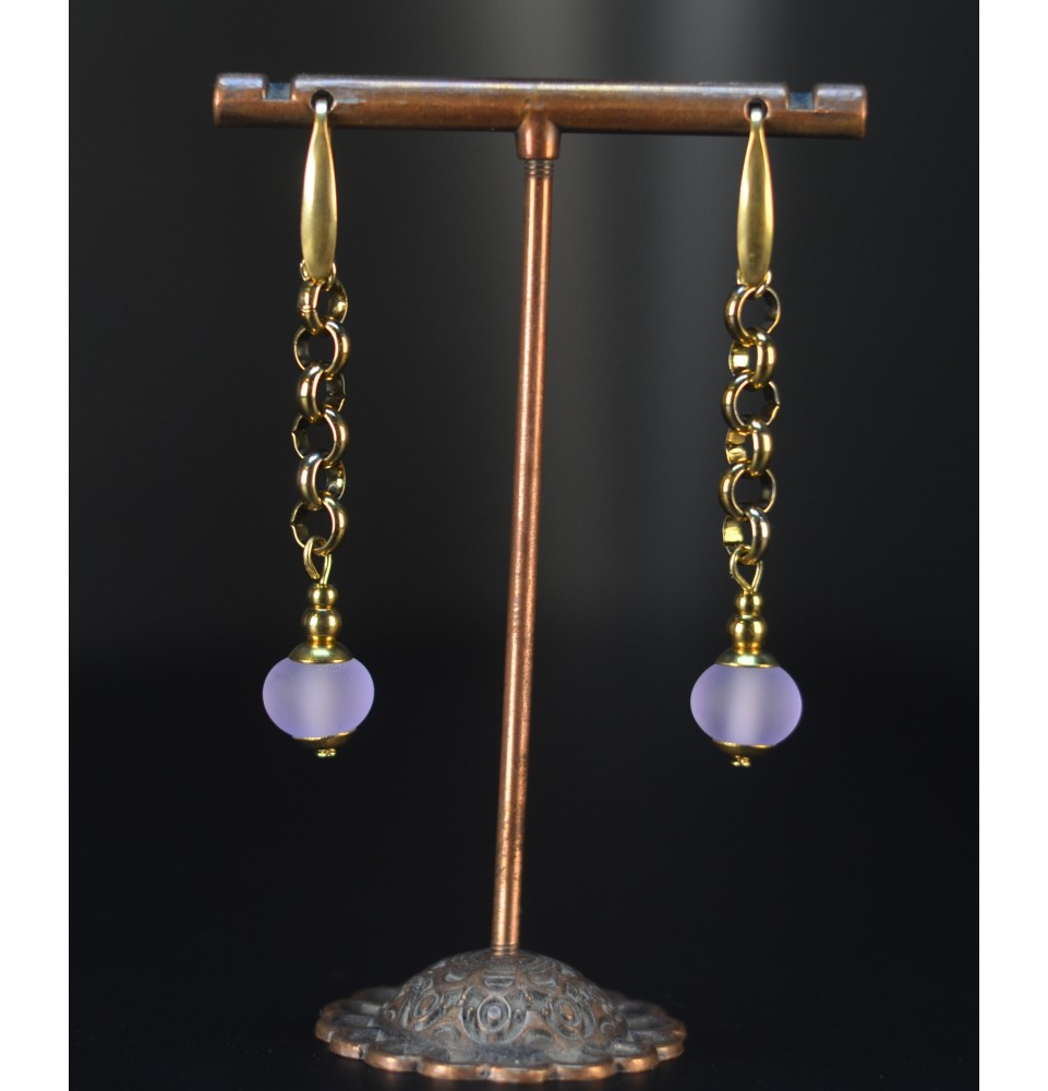 Boucles d’oreilles en perles verre filé – MAUVE mate - acier inoxydable doré