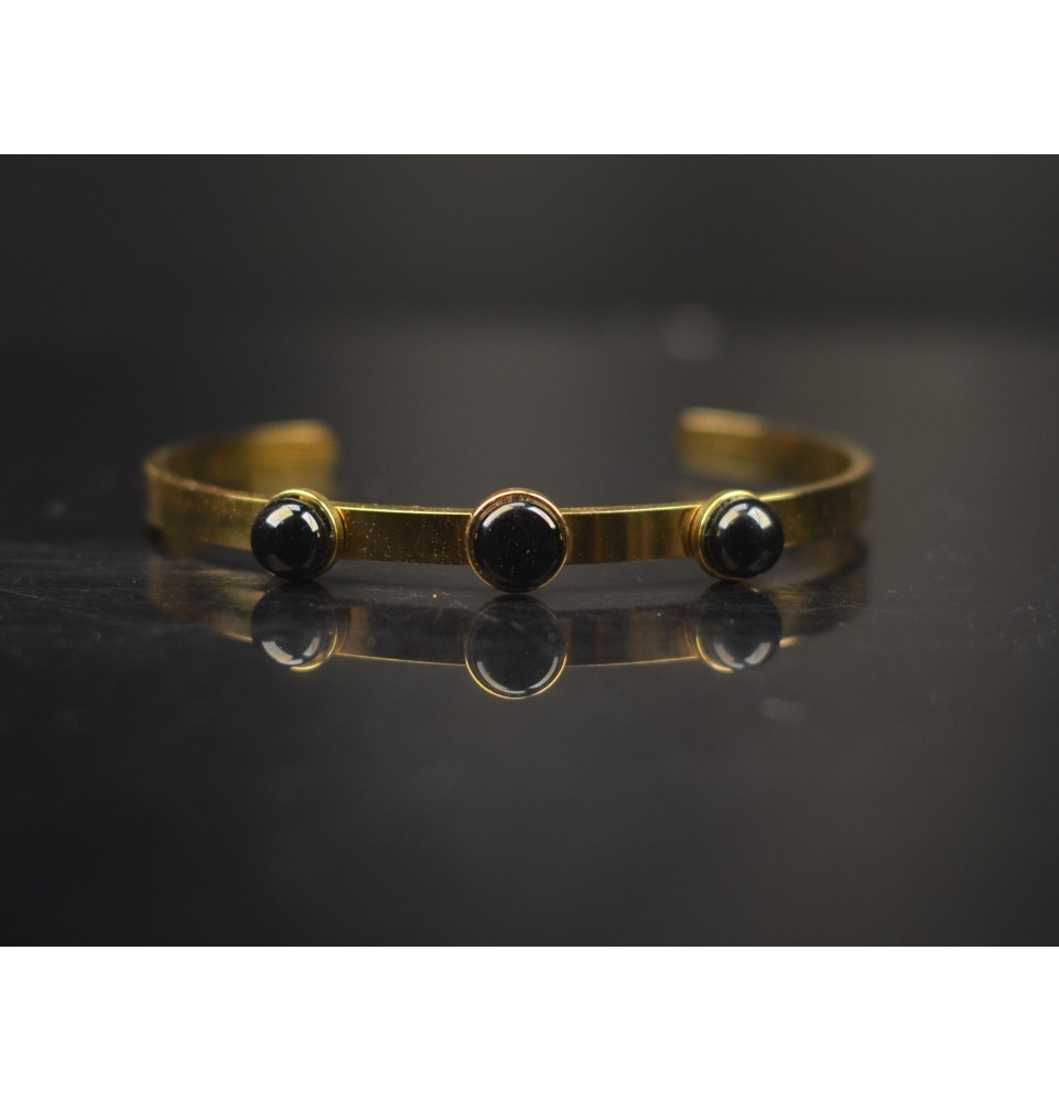 Bracelet rigide réglable acier inoxydable Doré – Cabochons en verre filé NOIR