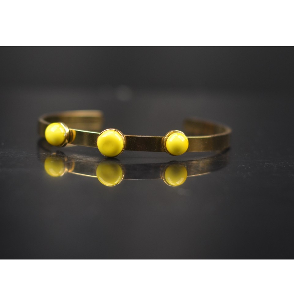 Bracelet rigide acier inoxydable – Cabochons en verre filé JAUNE