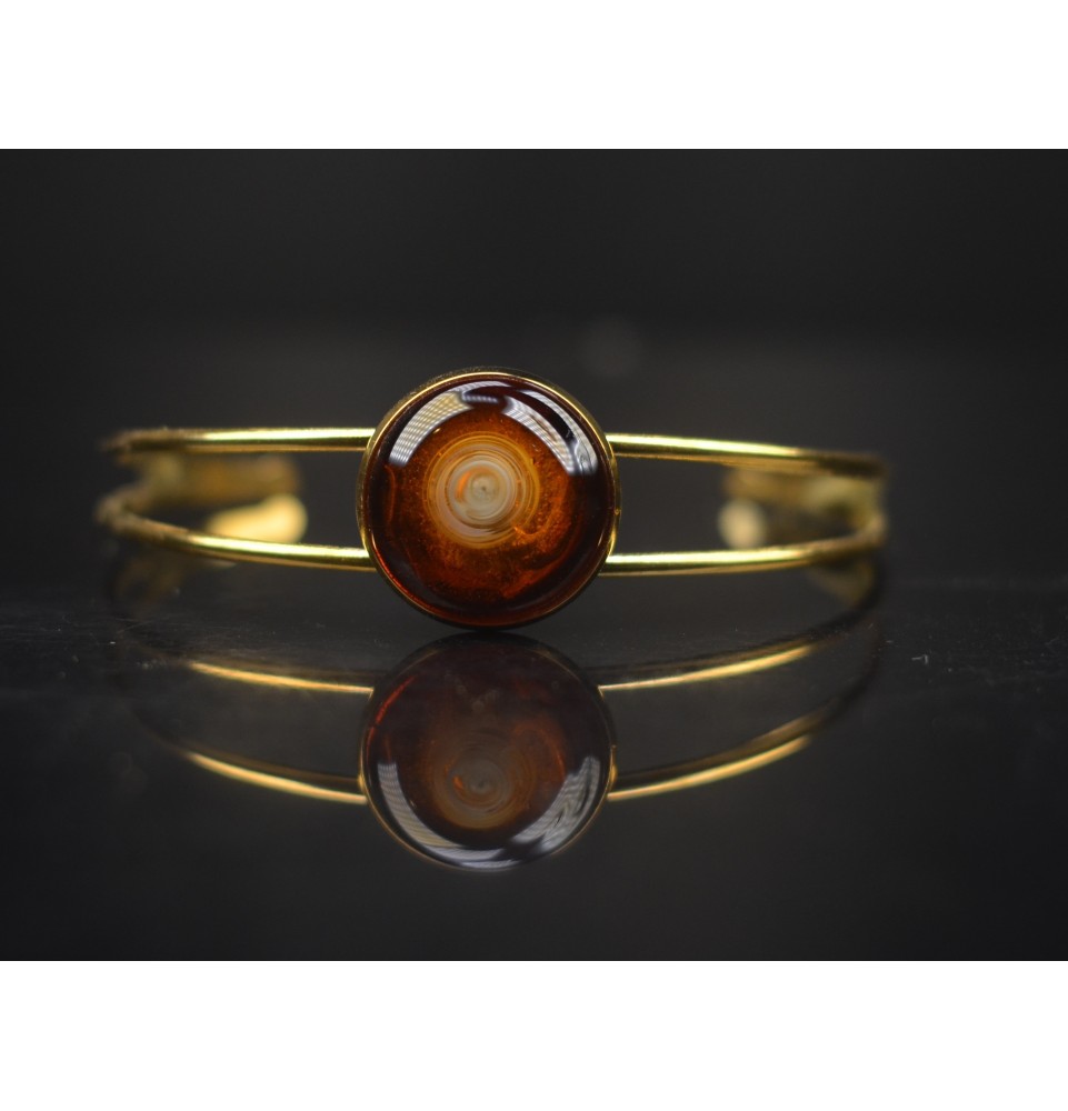 Bracelet rigide doré avec cabochon en verre artisanal – Création unique - dégradé ambré