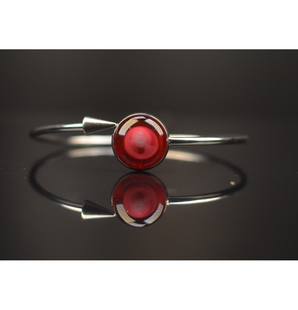 Bracelet pliable en acier inoxydable – Cabochon "ROSE RUBIS" en verre filé - pour poignets de 17.5 à 19 cm