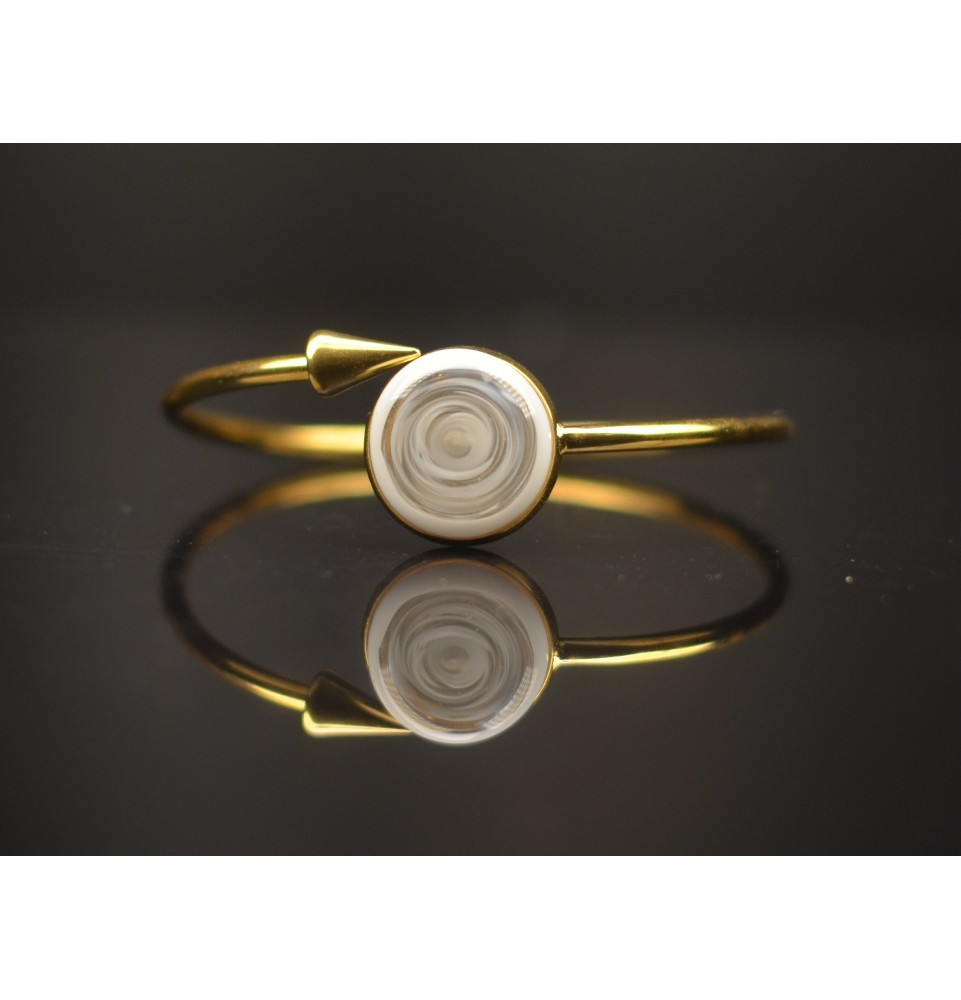 Bracelet pliable en acier inoxydable Doré – Cabochon "blanc" en verre filé - pour petits poignets