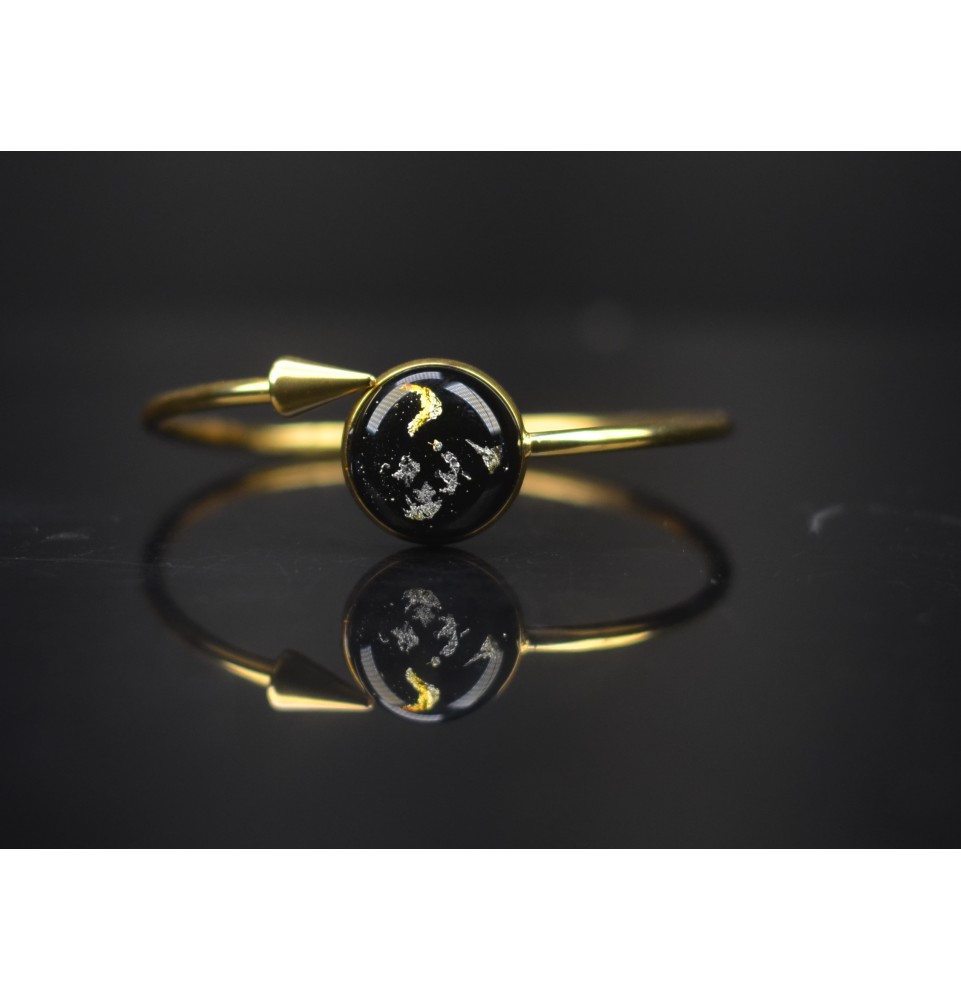 Bracelet pliable en acier inoxydable Doré – Cabochon "NOIR et Or" en verre filé - pour petits poignets