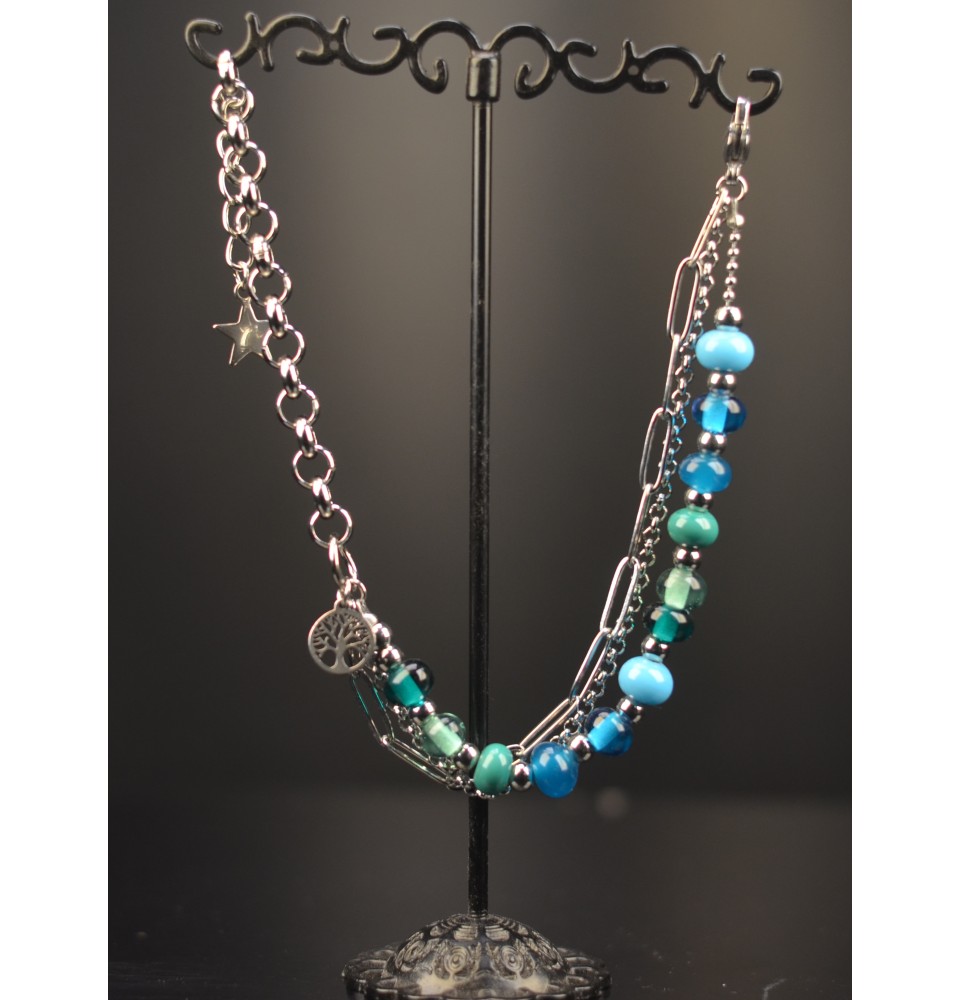 Bracelet multi-rangs en acier inoxydable et perles de verre filé – Modèle Unique