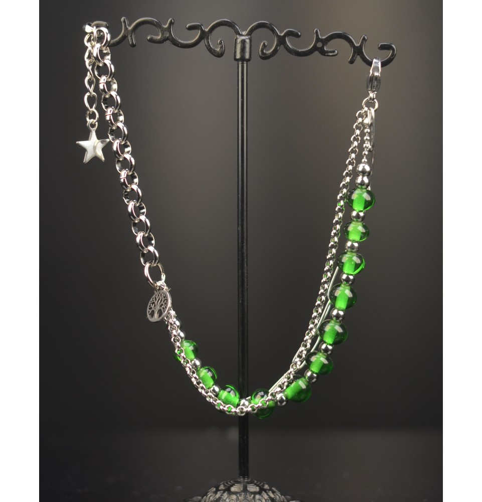 Bracelet multi-rangs en acier inoxydable et perles de verre filé – Modèle Unique - Vert émeraude