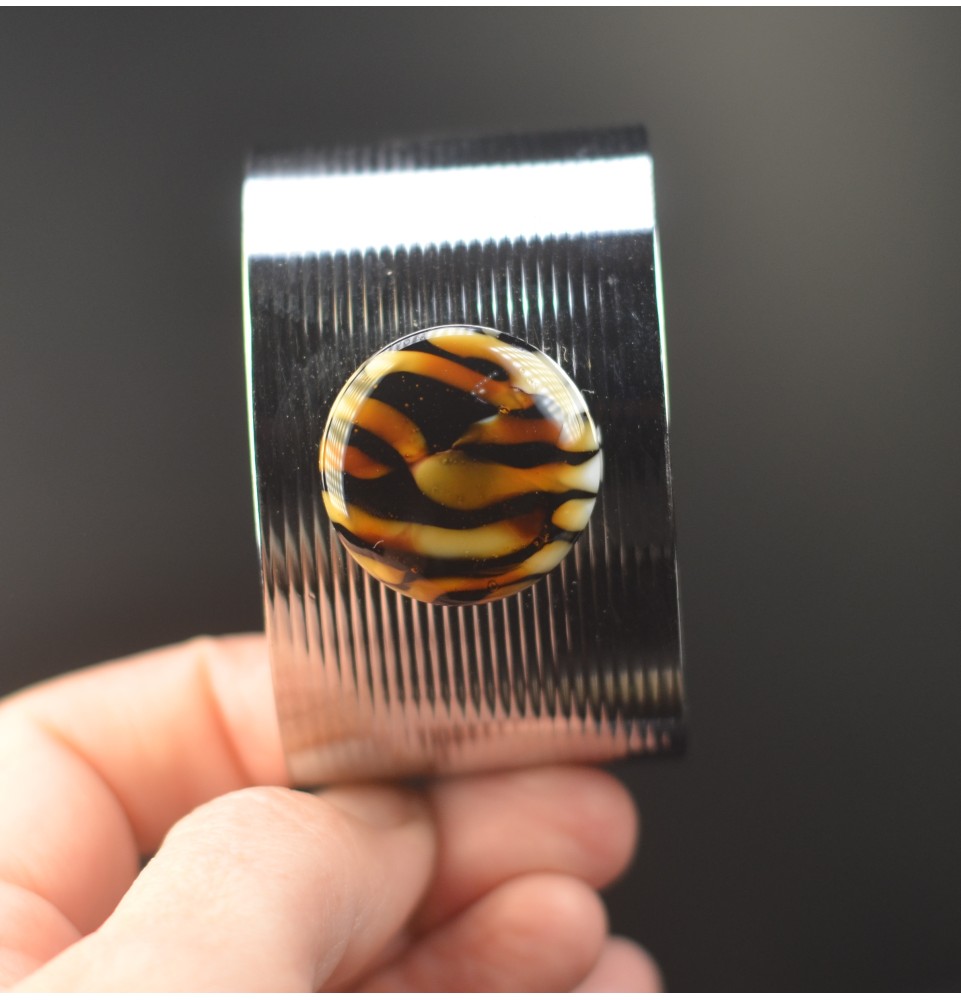 Bracelet Manchette Ajustable avec Cabochon LEOPARD – Pièce Unique en Verre Filé