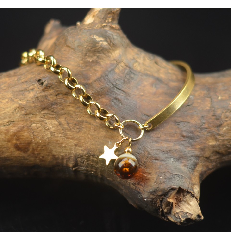 Bracelet demi-jonc doré avec perle de verre "dégradé ambré" et charm étoile