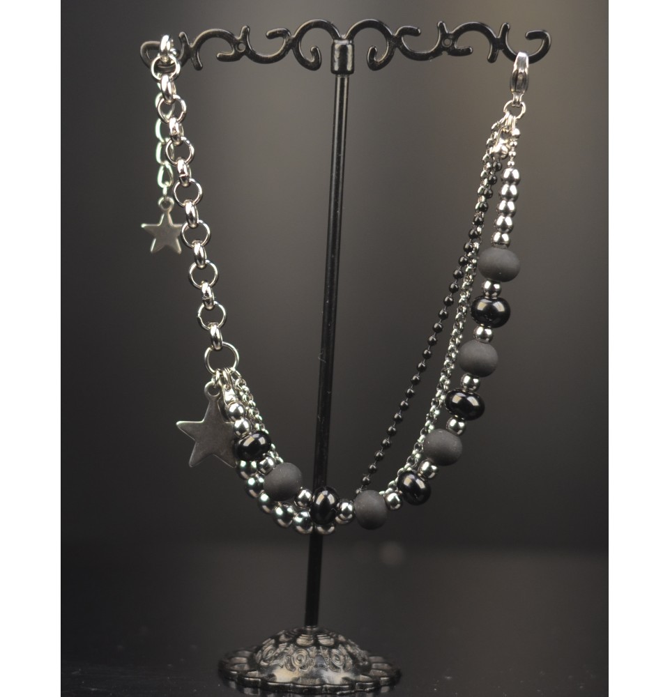 Bracelet multi-rangs en acier inoxydable et perles de verre filé – Modèle Unique - Noir