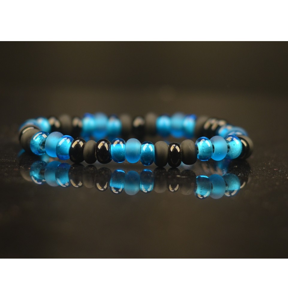 Bracelet Élastique en Perles de Verre "noir bleu" bracelet mixte ( homme / femme)