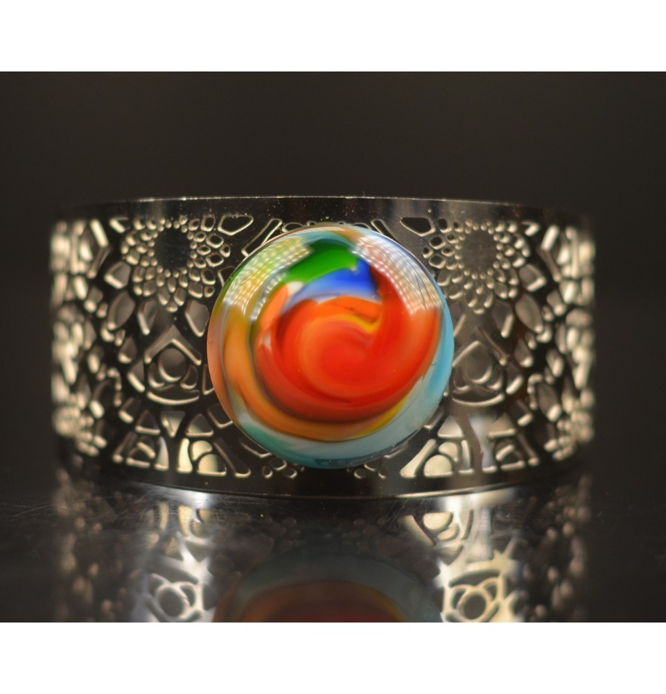 cabochon artisanal multicolore en verre pour bague ou collier interchangeable en verre (sans le support )