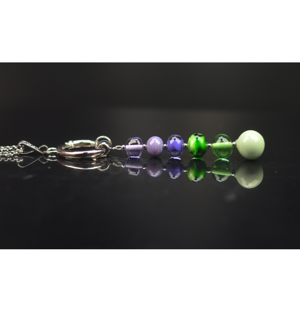Collier "Éclat de Joie" VERT VIOLET" en perles de verre filé - acier inoxydable