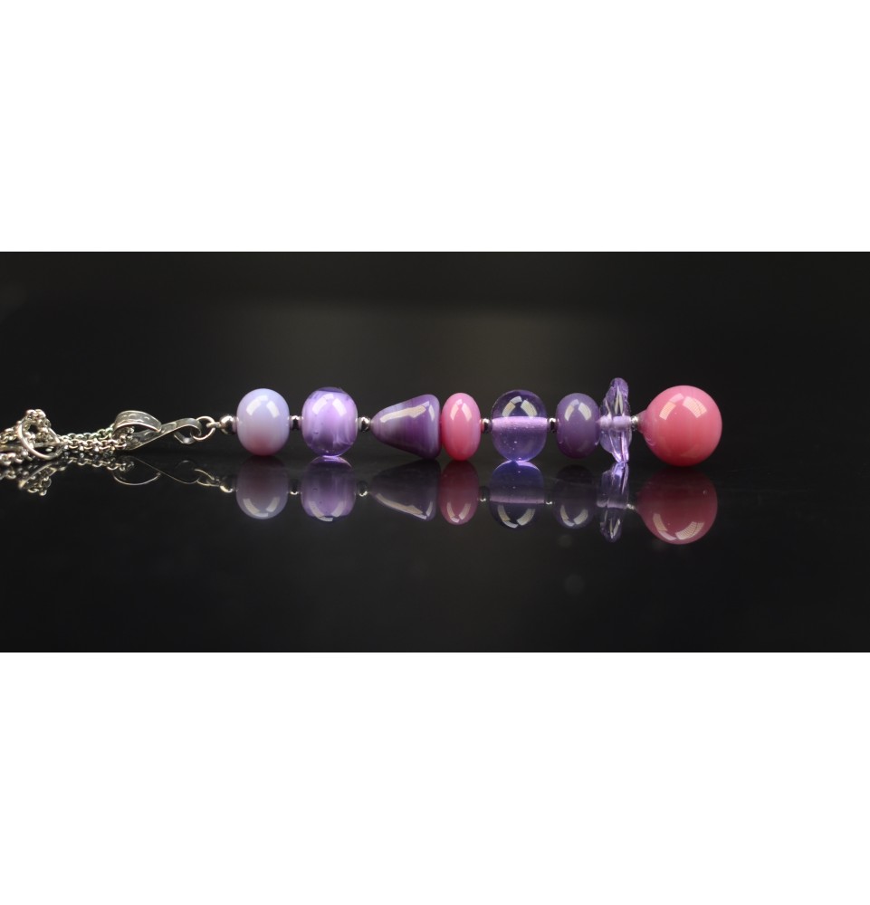 Collier "Éclat de Joie "VIOLET" en perles de verre filé - acier inoxydable