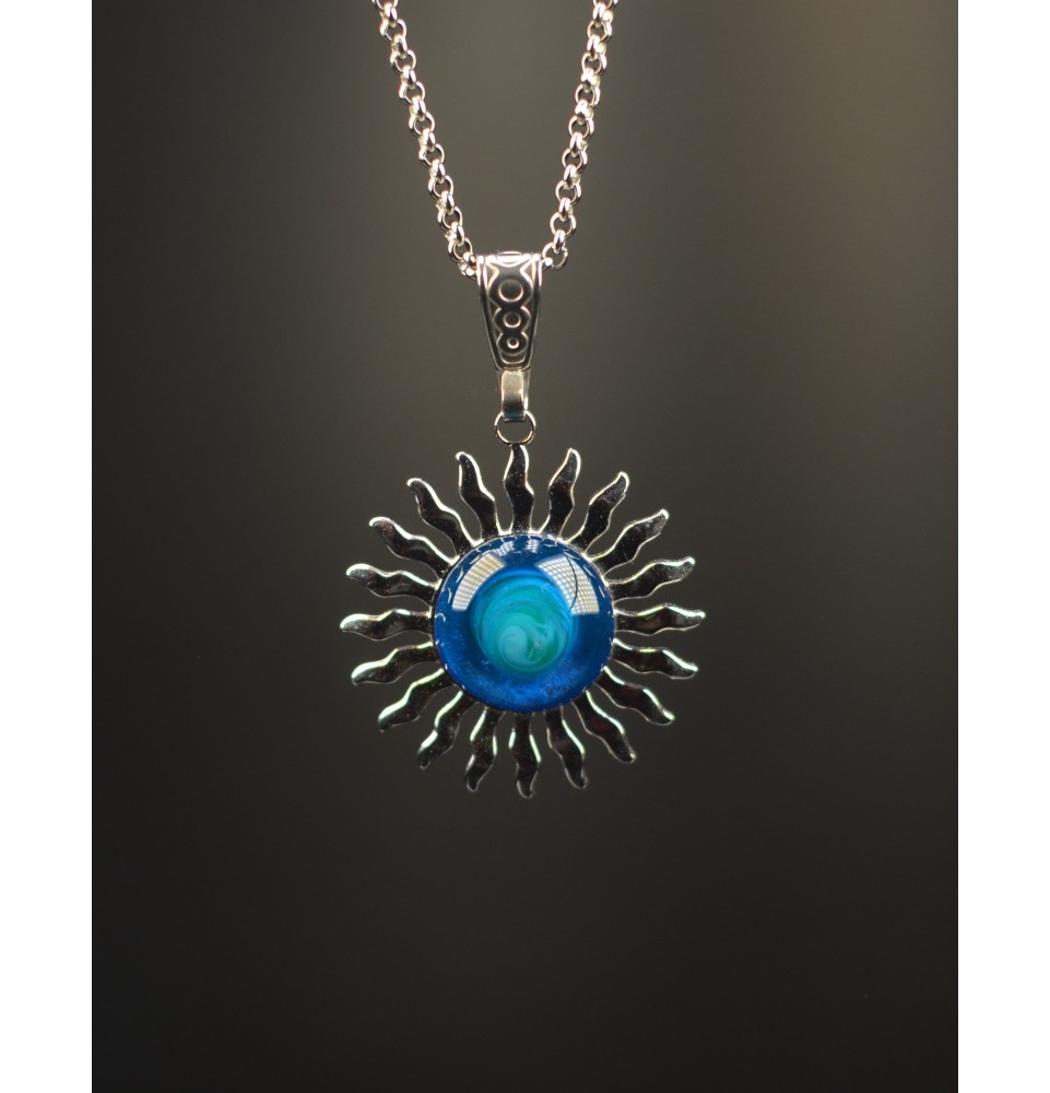 Collier Soleil – Cabochon en verre filé BLEU VERT