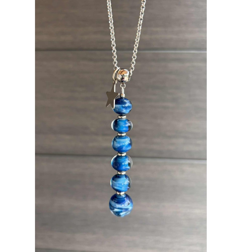 - Perles de verre filé au chalumeau : Chaque perle est façonnée à la main, garantissant des créations uniques et originales. Les perles varient en couleurs et en formes, ajoutant une touche de dynamisme et de sophistication à chaque collier.
