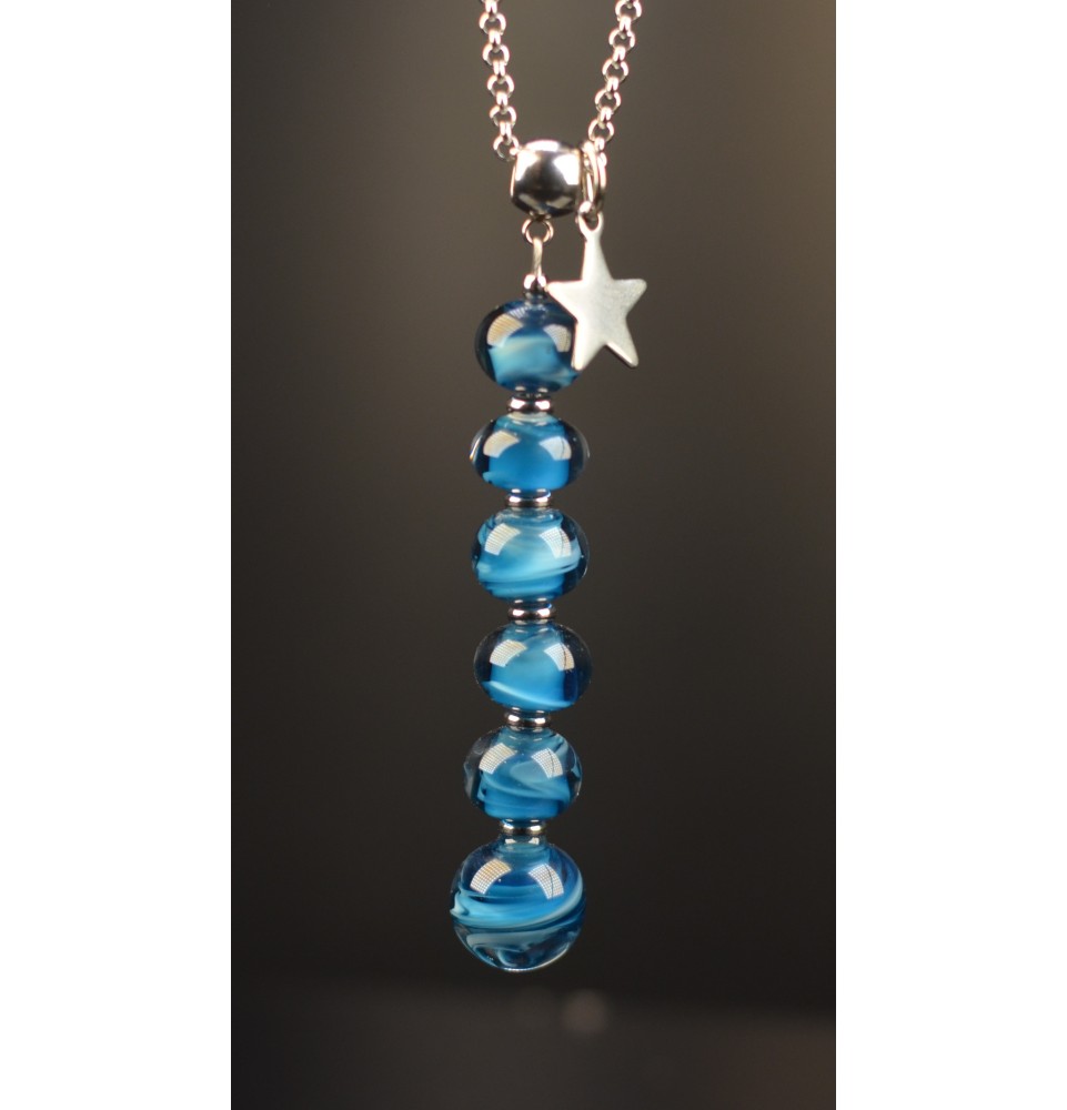 Collier "Éclat de Joie "bleu pétrole" en perles de verre filé - acier inoxydable